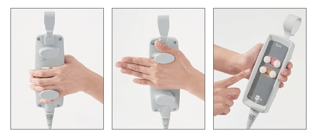 -握力弱的使用者也便於操作的夾持式遙控器